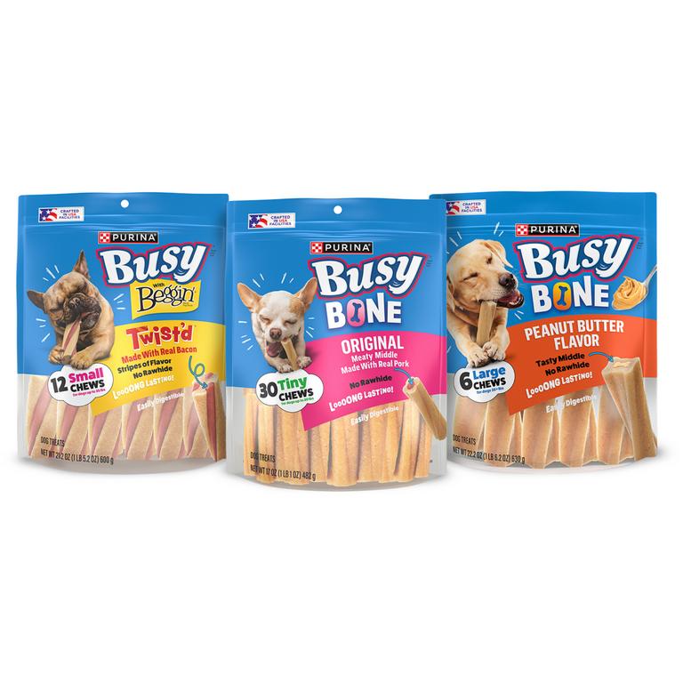 Save $1.00 on ONE (1) 5-25oz bag of Busy® Dog Treats.